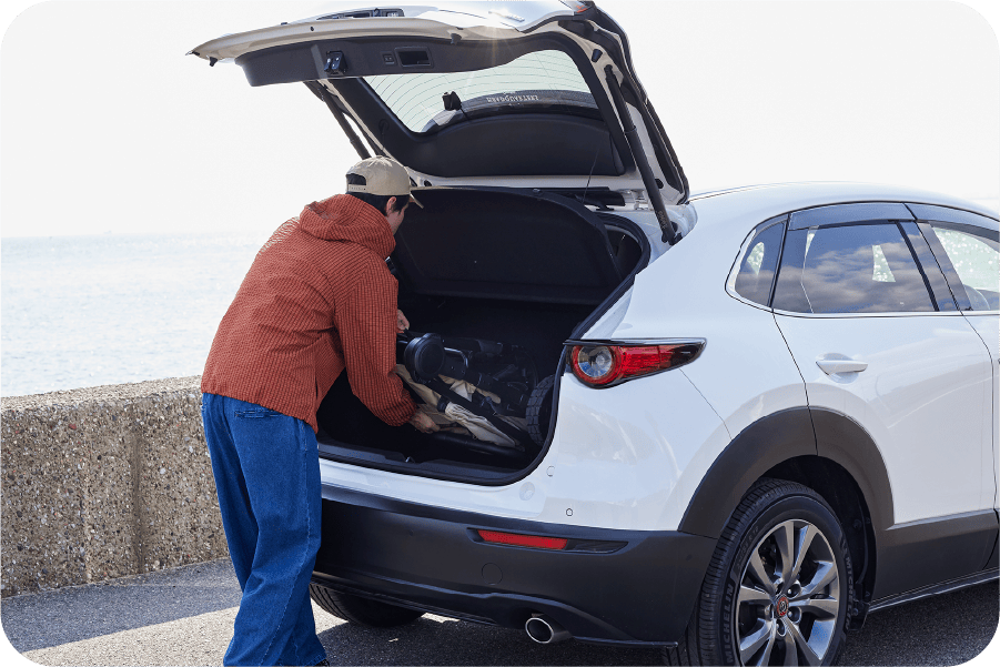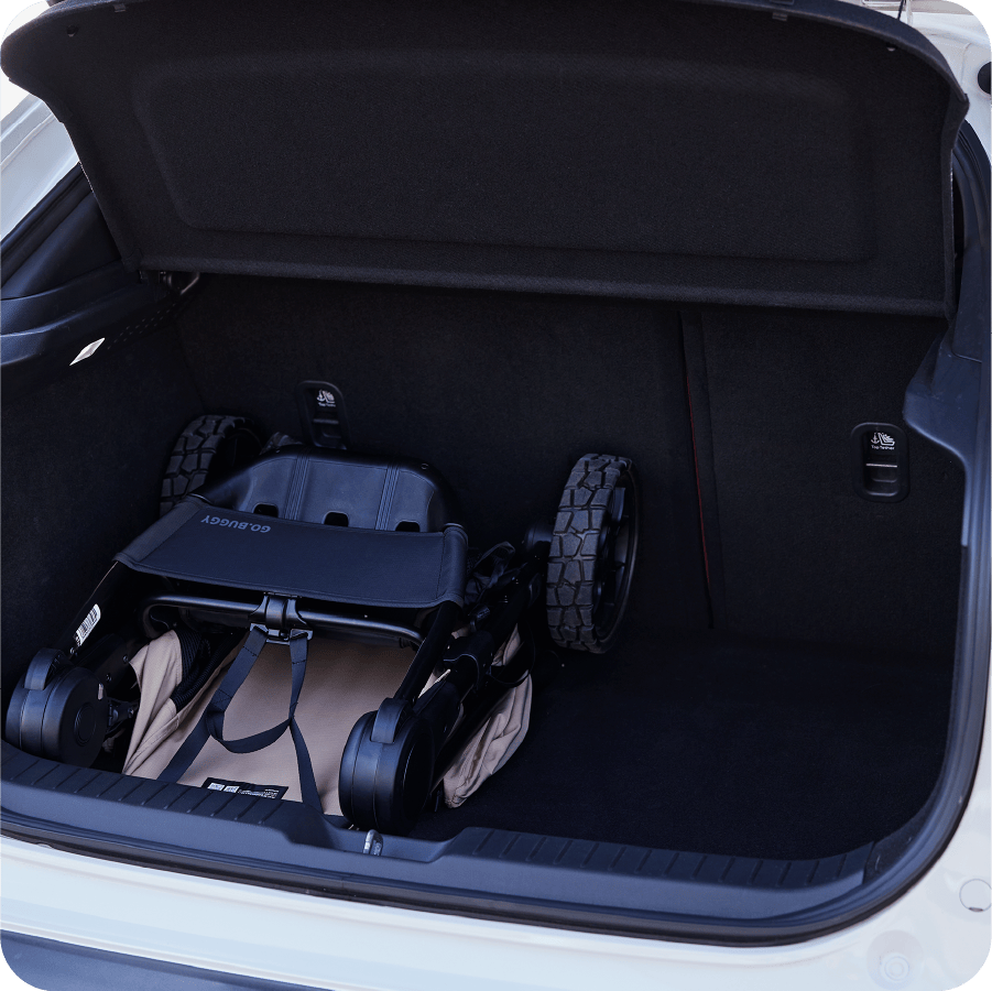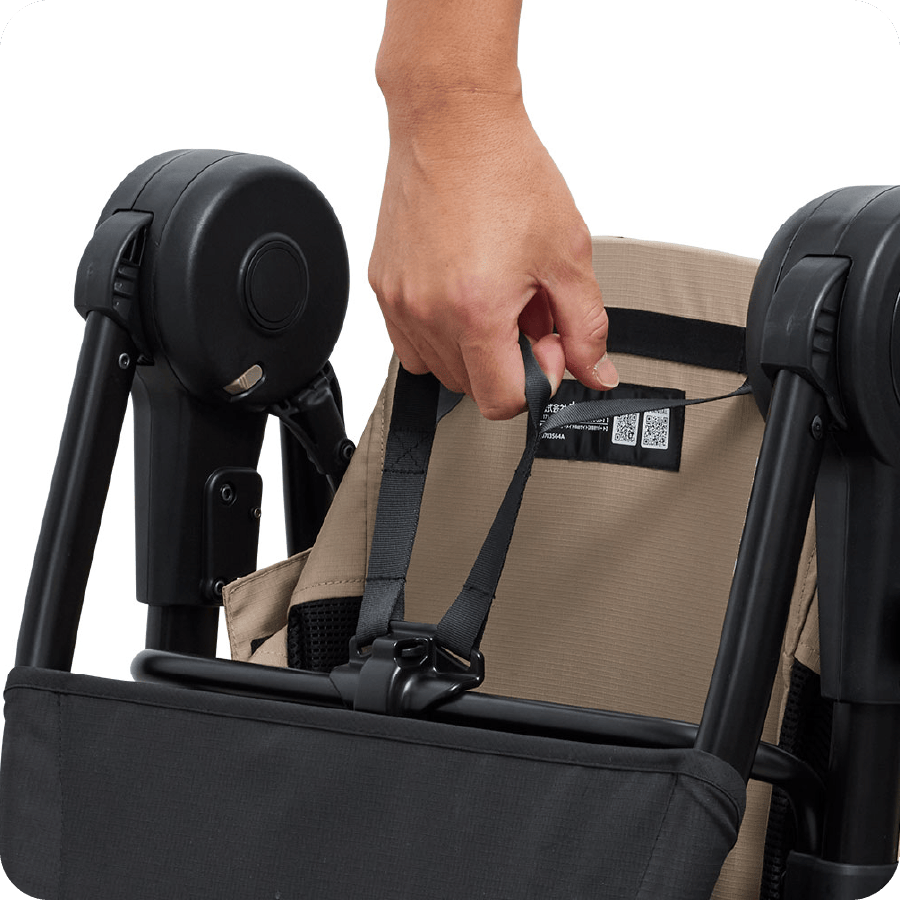 折りたたんだ後の持ち運びはもちろん、クルマへの積み込みや降ろし、さらには自宅での収納まで、すべて片手でラクに行える設計です。力をあまり必要とせずスムーズに扱えるため、外出先や帰宅後のちょっとした動作もストレスなく行え、日常のお出かけをより快適にサポートします。